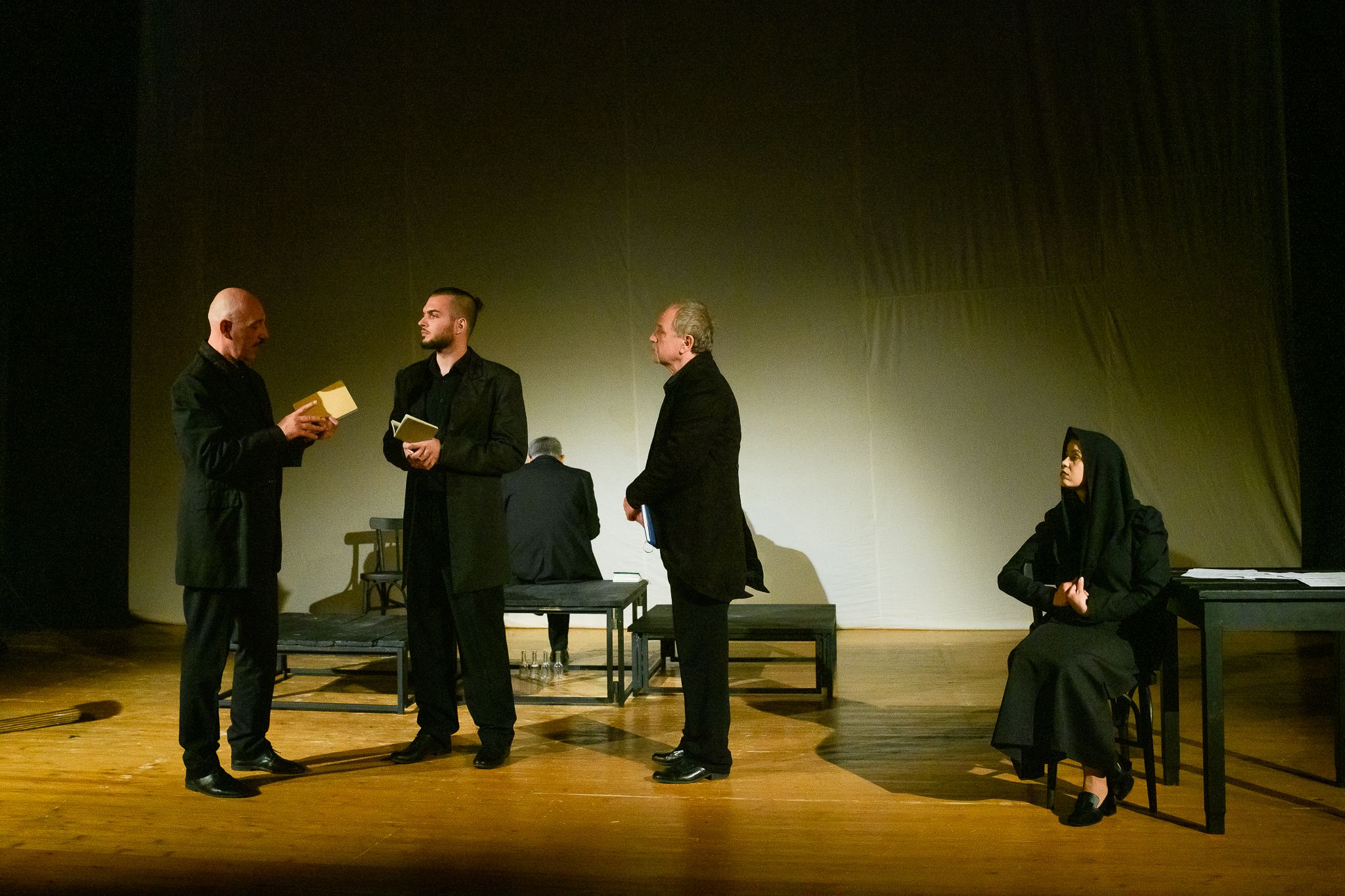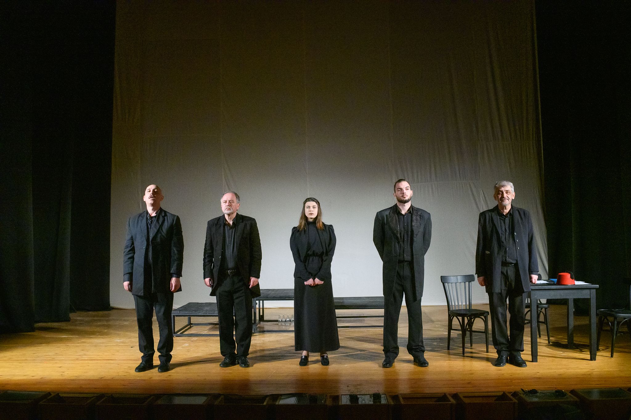 Ролите са поверени на ямболските актьори Николай Ганчев, Михаил Лазаров, Волен Митев, Димитър Димитров и Галина Иванова.